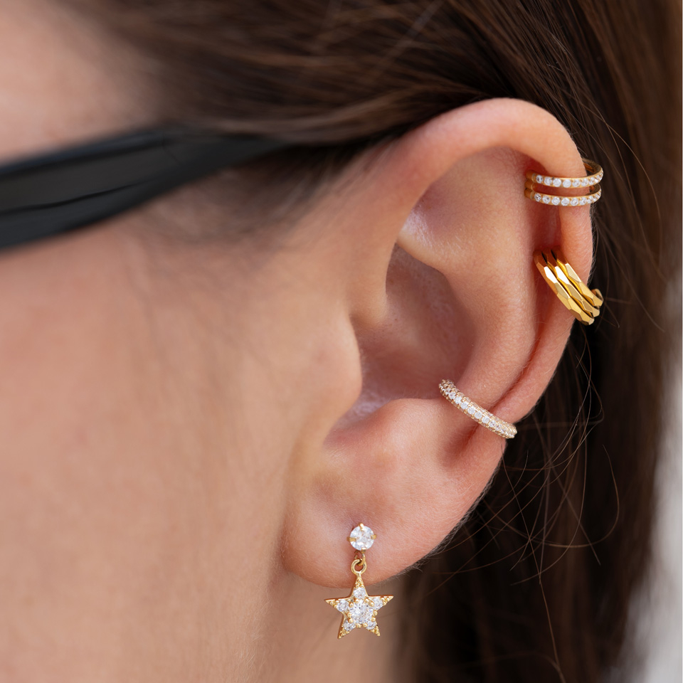 14K złote kółko z zawiasem zdobione kostką brukową z cyrkonu