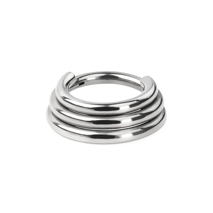 Mimo, że biżuteria ta nazywana jest trzywarstwowym kółkiem, w rzeczywistości składa się ona z 3 indywidualnych kółek, które są zespawane i połączone w całość. Tylko środkowe kółko jest kompletne, natomiast w pozostałych dwóch jedna część została usunięta, dlatego w przekłuciu znajduje się tylko jedno kółko.
