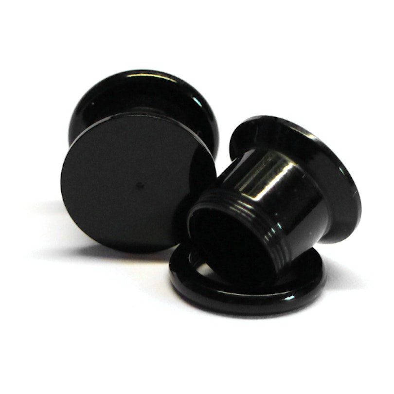Plug jest wykonany z czarnego akrylu i wyposażony z tyłu w wewnętrzny gwint, który pozwoli na jego szybkie zakładanie i zdejmowanie. Przednia część jest płaska i ma pośrodku mały otwór o rozmiarze 0,8 mm, który jest standardową grubością większości kolczyków.