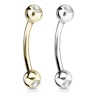 Ładny i kobiecy kolczyk-banan wykonany z 14 karatowego złota, który zamykany jest z dwóch stron kulkami zdobionymi przezroczystymi cyrkoniami. Jest to doskonały wybór dla tych, którzy szukają klasycznego i dyskretnego wzoru z odrobiną elegancji. Ten model zawsze pozostanie na czasie i nigdy nie wyjdzie z mody.