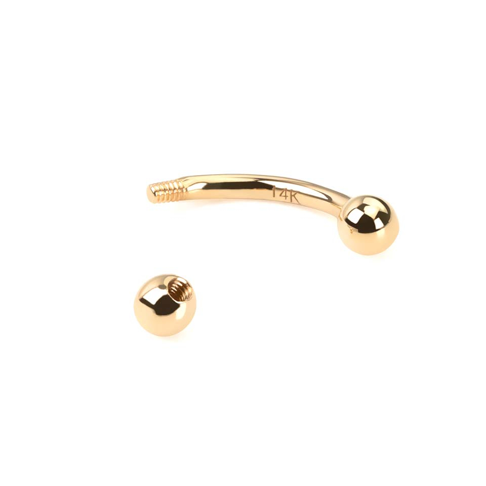 Elegancka i luksusowa sztanga o zakrzywionej formie wykonana z 14 karatowego złota. Jej wzór jest bardzo prosty i klasyczny, a dodatkowo możesz wybrać długość pręcika, jego grubość oraz wielkość kulek.