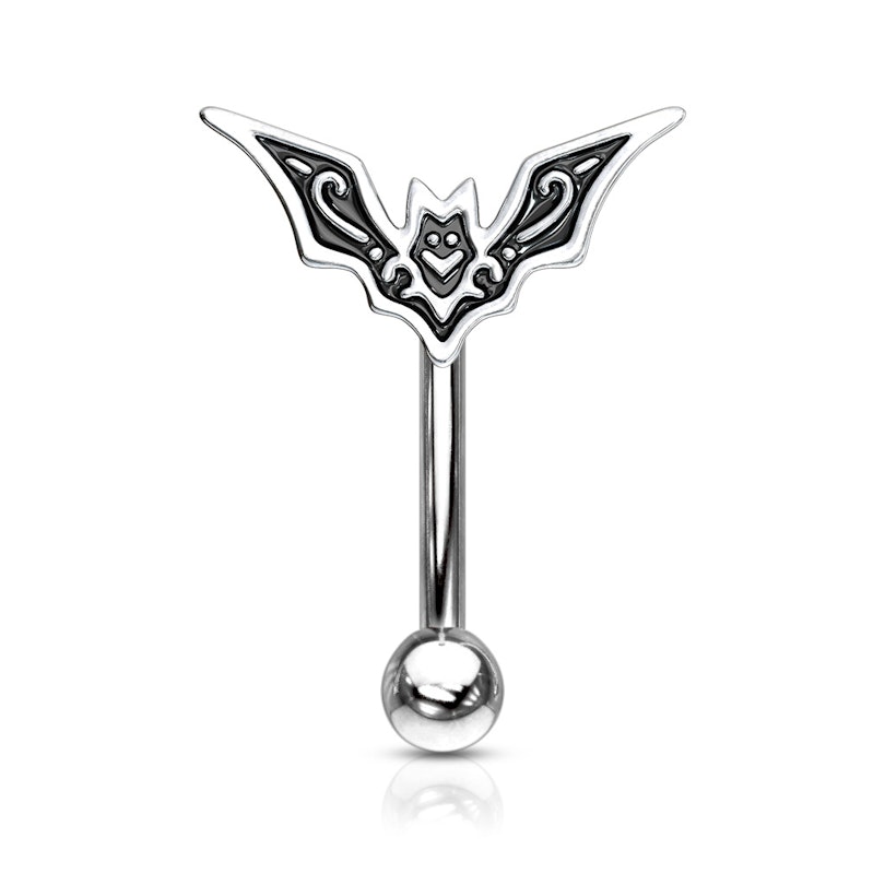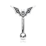 Na górze biżuteria jest zdobiona nietoperzem z rozpostartymi skrzydłami, zauważysz w nim drobne szczegóły jak oczy, kolczaste uszy czy też jamę ustną. Dolna część kolczyka zamykana jest kulką o średnicy 3 mm.