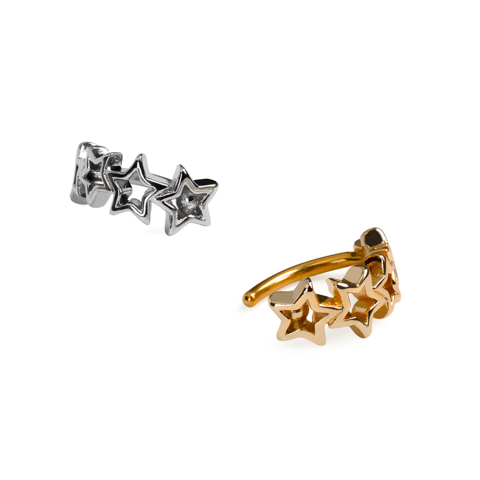 Ten clicker do pępka zamykany zawiasem i zdobiony gwiazdkami będzie świetnym dodatkiem w Twojej kolekcji biżuterii do pępka. Zawias ułatwia jego zakładanie i zabezpieczenie w piercingu.