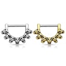 Jeśli masz przekłucie w jednym lub dwóch sutkach, zerknij na prezentowany model kolczyka. Jest to biżuteria z zawiasem, dzięki któremu prosto się go zakłada i zdejmuje. Zapięcie jest częścią kolczyka, zatem nie musisz się martwić, że któraś z części wypadnie lub ją zgubisz. Pręcik z jednej strony ma zawias, a z drugiej zaciska się go jednym kliknięciem.