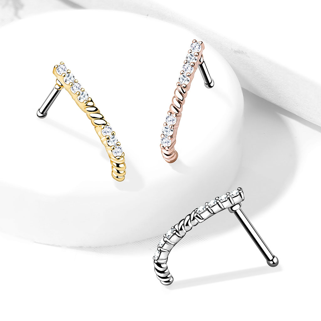 Biżuteria oferowana jest w 3 rożnych kolorach: złotym, różowym złocie i srebrnym. Kolczyk ma standardowy rozmiar dla piercingu nosa: gwint ma grubość 0.8 mm, a długość wynosi 6 mm. Jeśli szukasz wyjątkowej biżuterii do nosa, ten model musi znaleźć się w twojej kolekcji.