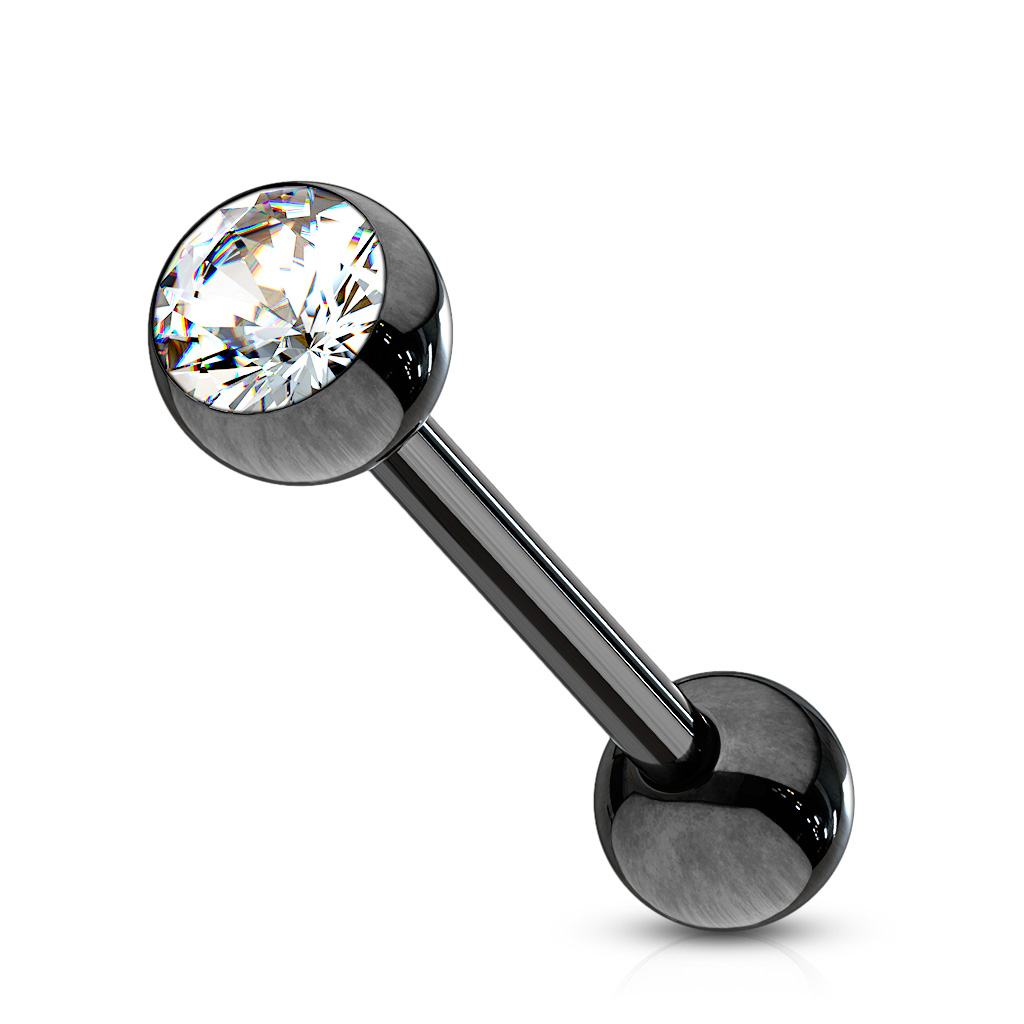 Nazwa: Czarny kolczyk do języka z kolorowym kamieniem