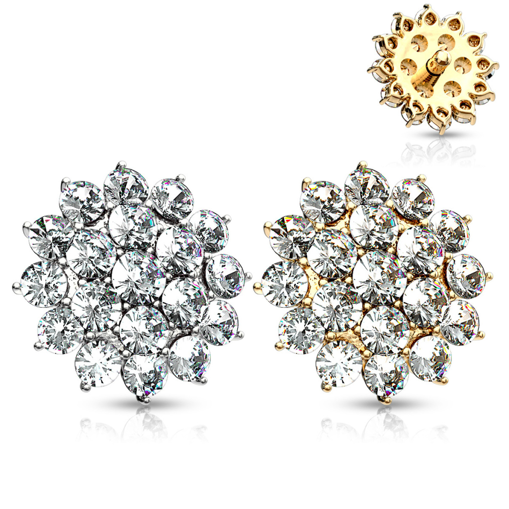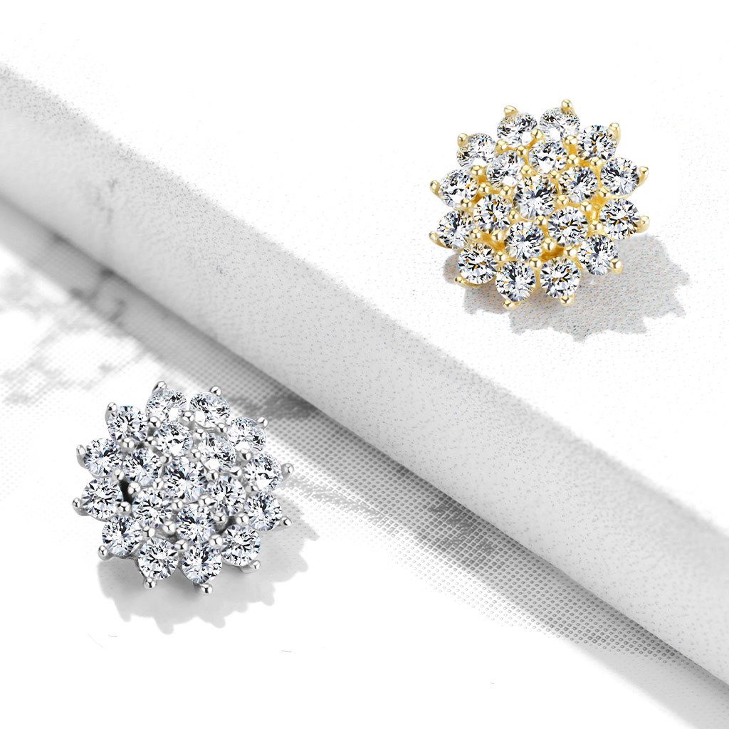 Mamy dla ciebie wyjątkową ozdobę do dermala anchor. Ten piękny top w kształcie kwiata, który pokryty jest mnóstwem kryształków nadaje mu piękny efekt.