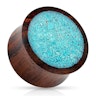 Drewniany plug z pokruszonym turkusowym kamieniem
