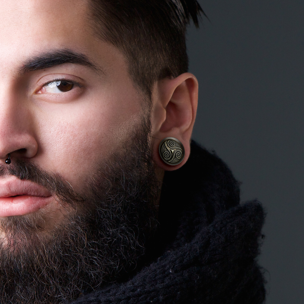 Z przodu, plug dekorowany jest szczegółowym wzorem tribal, który nadaje biżuterii odmiennego i oryginalnego wyglądu.