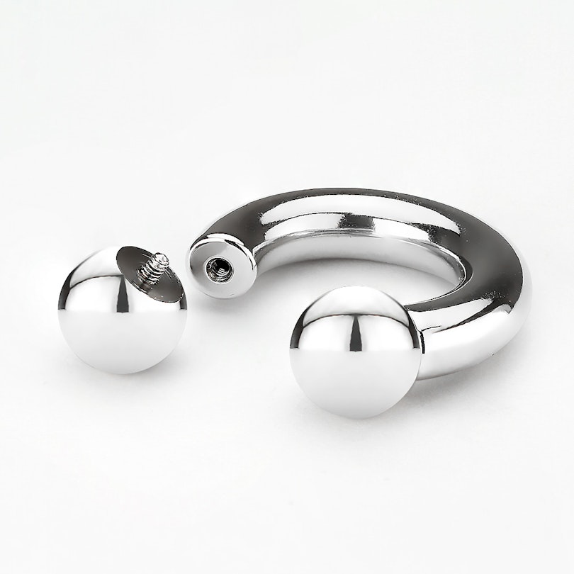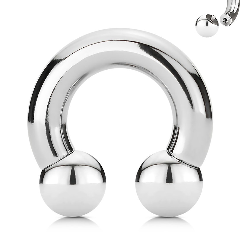 Podkowa w intymnym piercingu to świetny i seksowny pomysł! Czemu nie wykorzystasz tej prezentowanej na zdjęciu. Wykonana z bezpiecznej stali chirurgicznej, która ma srebrny, elegancki połysk i klasyczny design. Jest dostępna w wielu rozmiarach i grubościach, dzięki czemu nie będziesz mieć problemu z dopasowaniem jej do przekłucia.
