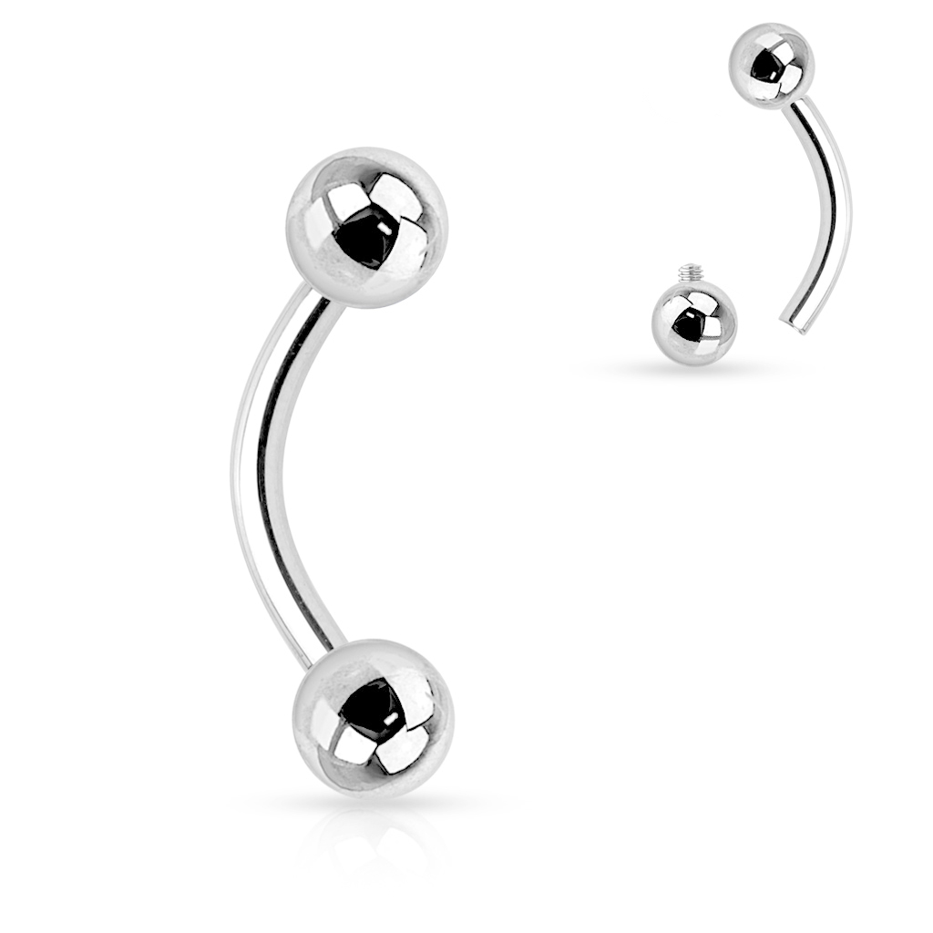 Zakrzywione sztangi lub kolczyki-banan są bardzo uniwersalnym rodzajem biżuterii i pozostawiają wiele możliwości. Jedyne czego potrzebujesz to upewnić się, aby rozmiar biżuterii pasował do przekłucia. Możesz go nosić w ustach jako pionowy labret, gdyż ma długość 10 mm i grubość 1,2 mm. Kulki mają rozmiar 3 lub 4 mm średnicy.