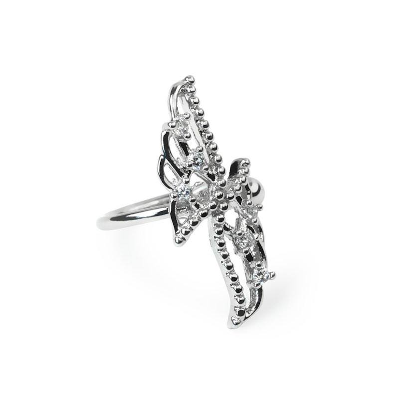 Ten elegancki ear cuff to para skrzydeł zdobiona drobnymi kamieniami i koralikami.