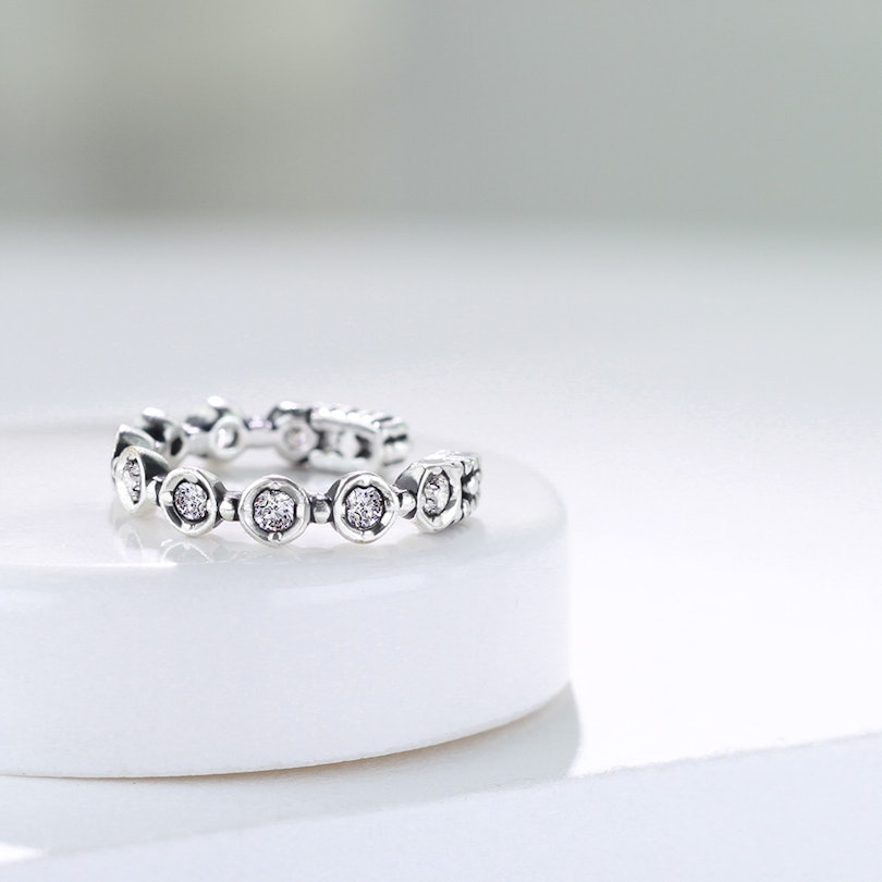 Całość zdobiona jest 9 cyrkoniami, które ułożone są jedna obok drugiej. Każda ma 1,5 mm średnicy co sprawia, że ma dyskretny rozmiar ale nadal robi wrażenie.