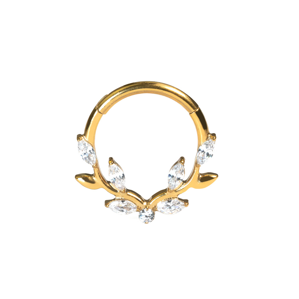 Nazwa: Frontalne kółko clicker z tytanu z liśćmi winorośli i kamieniami