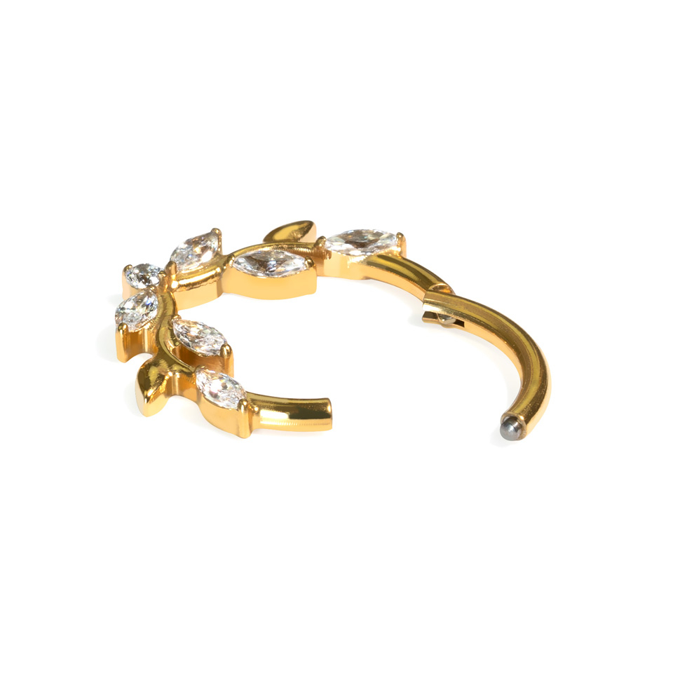 To wysokiej jakości frontalne kółko clicker zdobione jest pięknym motywem winorośli, które będzie świetnie wyglądać w takich piercingach jak daith lub septum. Wykonane z tytanu jest wytrzymałe i hipoalergiczne. Będzie świetnym dodatkiem do Twojej kolekcji.