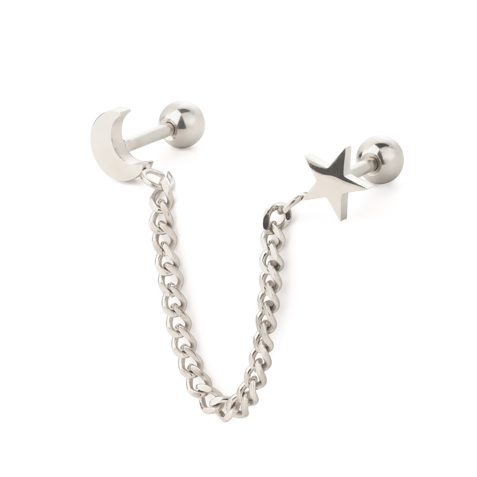 Biżuteria ta składa się z dwóch sztang połączonych łańcuszkiem. Każdy pręcik ma 1.2 mm grubości i 6 mm długości. Z tyłu wyposażony jest w kulkę zamykającą o wielkości 4 mm. Z przodu zdobiony jest odpowiednio półksiężycem i gwiazdką.