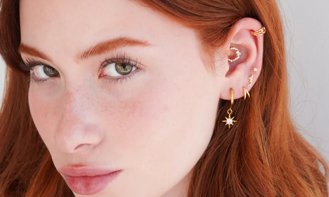 Kolczyki typu huggies, sztyfty i cuffs, dzięki którym łączenie kolczyków jest dziecinnie proste.