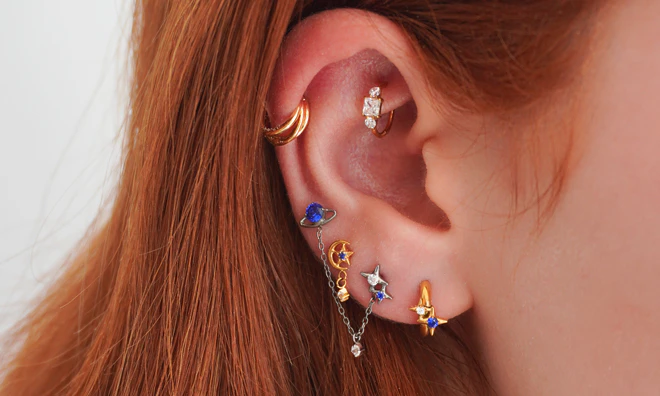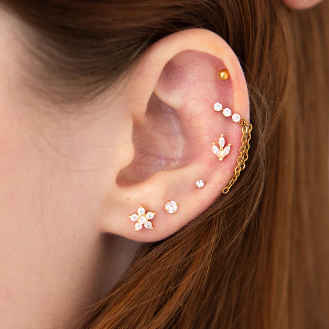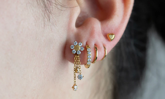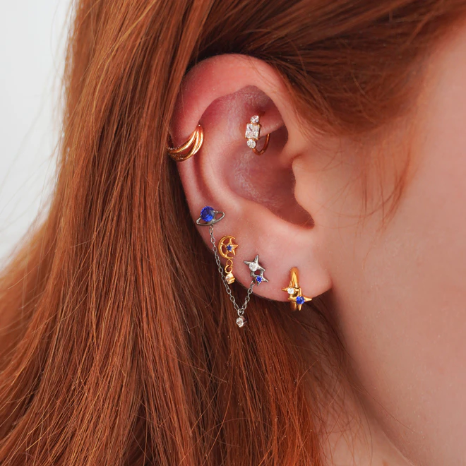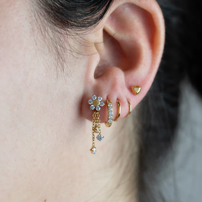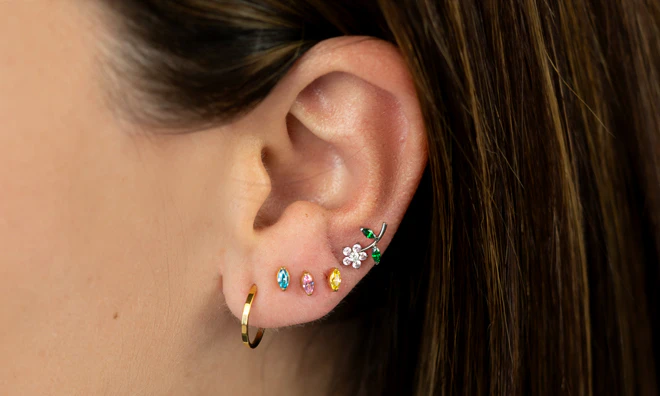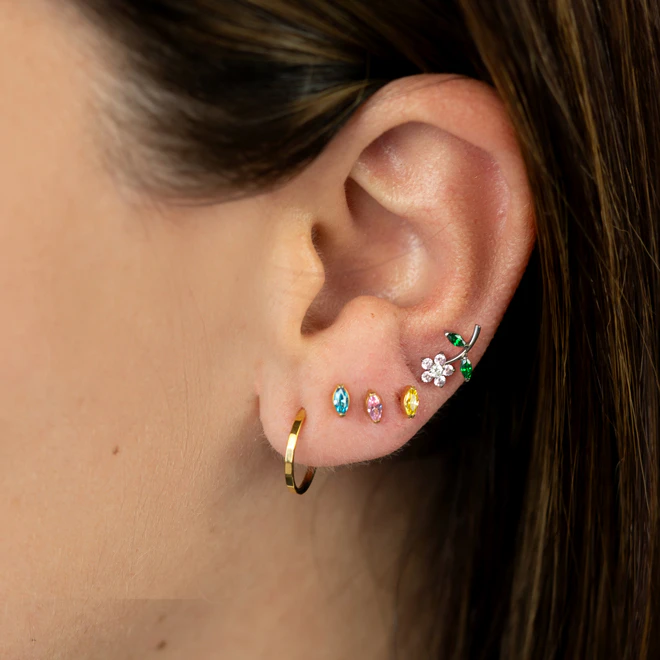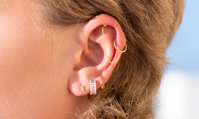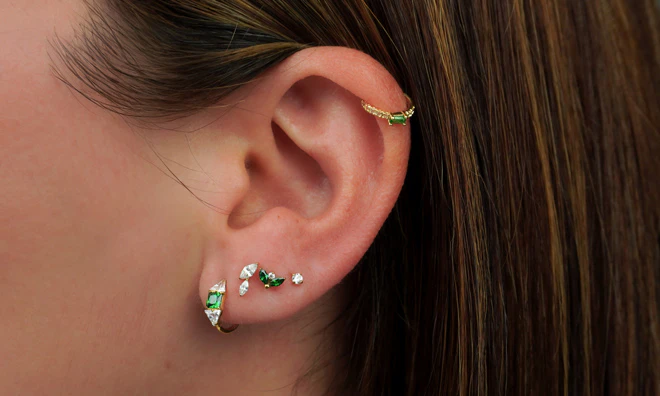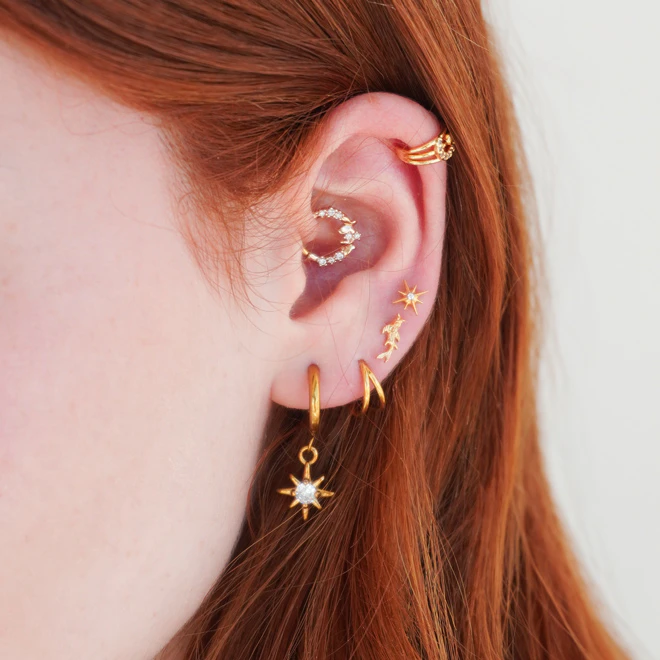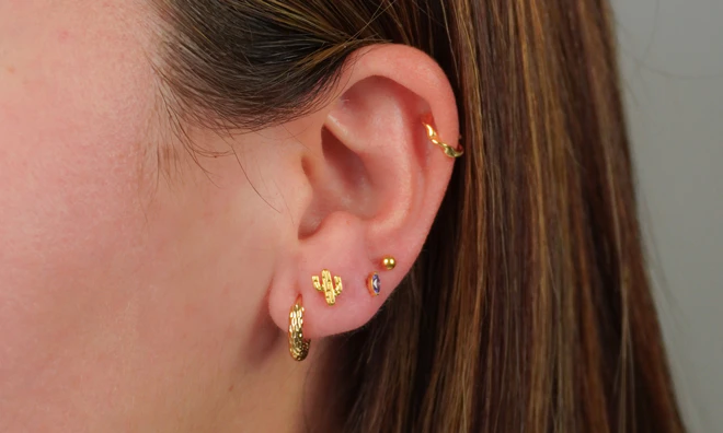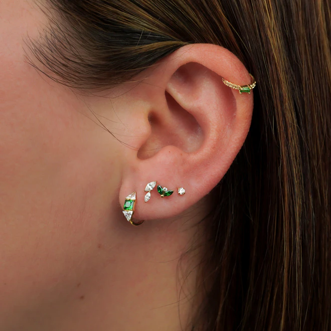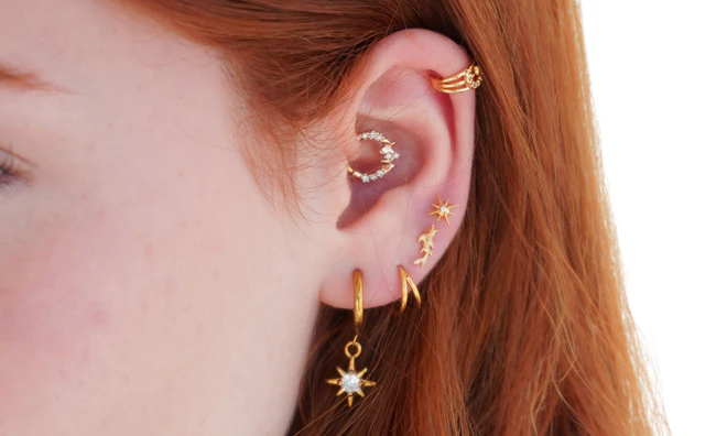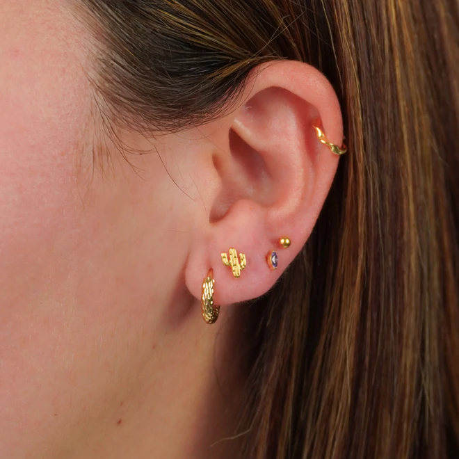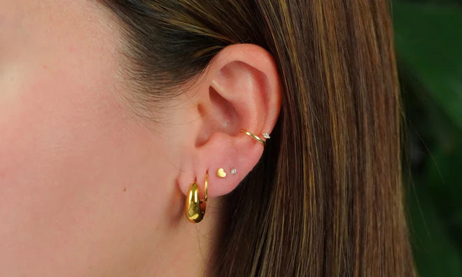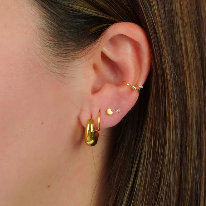 Kolczyki typu huggies, sztyfty i cuffs, dzięki którym łączenie kolczyków jest dziecinnie proste.