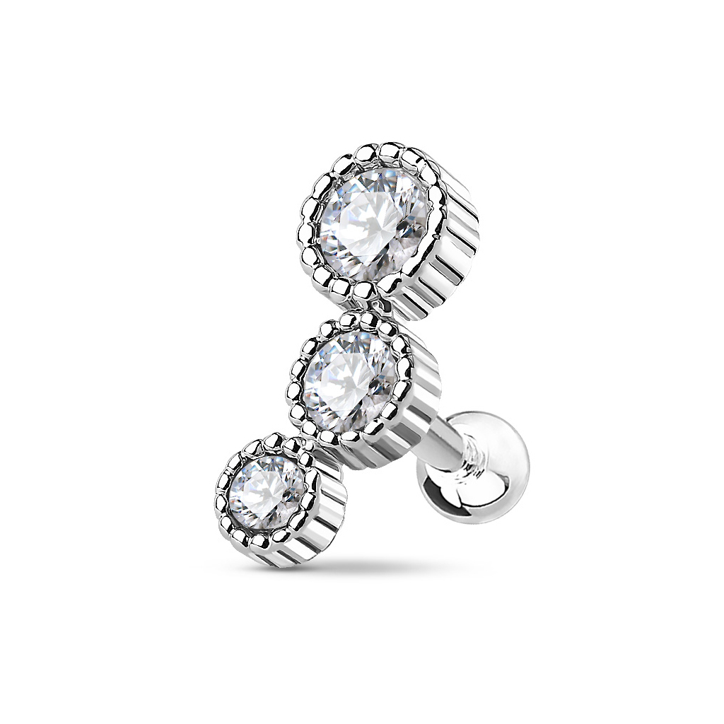 Kolczyk do helixa z trzema okrągłymi kamieniami w różnych rozmiarach