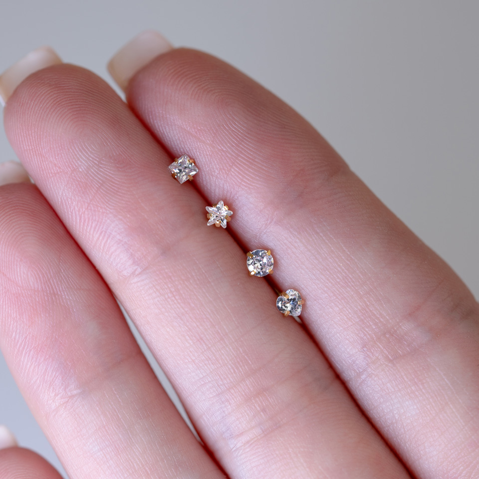 Pręcik ma kształt litery L, co sprawia, że będzie bezpiecznie osadzony w przekłuciu i nie wypadnie. Rozmiar pręta jest taki sam we wszystkich modelach, 0.8 mm grubości i 6 mm długości. Wielkość cyrkonii waha się pomiędzy 2.5 i 3 mm, w zależności od modelu. Wszystkie kolczyki są wykonane ze stali chirurgicznej.