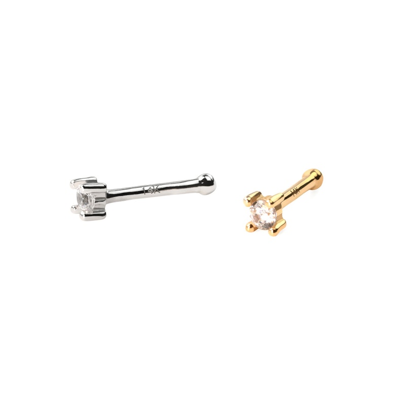Prosta biżuteria jest często tą najpiękniejszą - zwłaszcza jeśli jest to biżuteria wykonana z 14-karatowego złota. Kolczyk, na który klikasz, jest prostym prętem do nosa z pięknym kamieniem z przodu. Pręt do nos nie jest zwyczajnym, powszechny prętem! Jest on wykonany z 14-karatowego złota, który możesz również zdobyć w 14-karatowym białym złocie. Kolczyk mierzy 0,8 mm. grubości i 6 mm. długości, dzięki czemu jest to bardzo dyskretny.