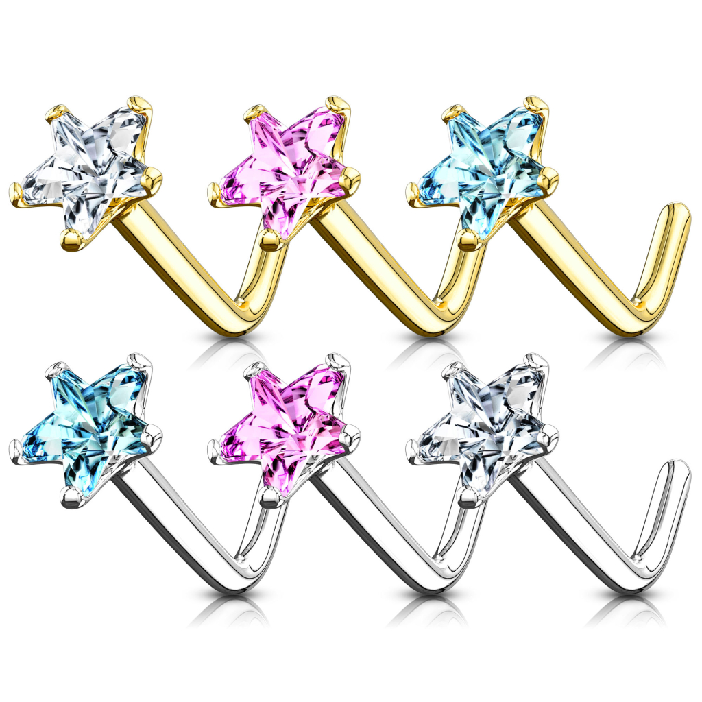 Zaświeć jak gwiazda dzięki tej ślicznej i kobiecej biżuterii do nosa, która zdobiona jest błyszczącą gwiazdką. Kształt i wycięcie kamienia sprawia, że świeci się on niesamowicie z każdej strony. W rzeczywistości jest on podobny do prawdziwych diamentów, które są bardzo doceniane w świecie bizuterii. Mamy dla Ciebie do wyboru trzy kolory kryształków: przezroczysty, jeśli szukasz klasycznego wyglądu, różowy, który doda kobiecości i turkusowy, który doda świeżego wyglądu.