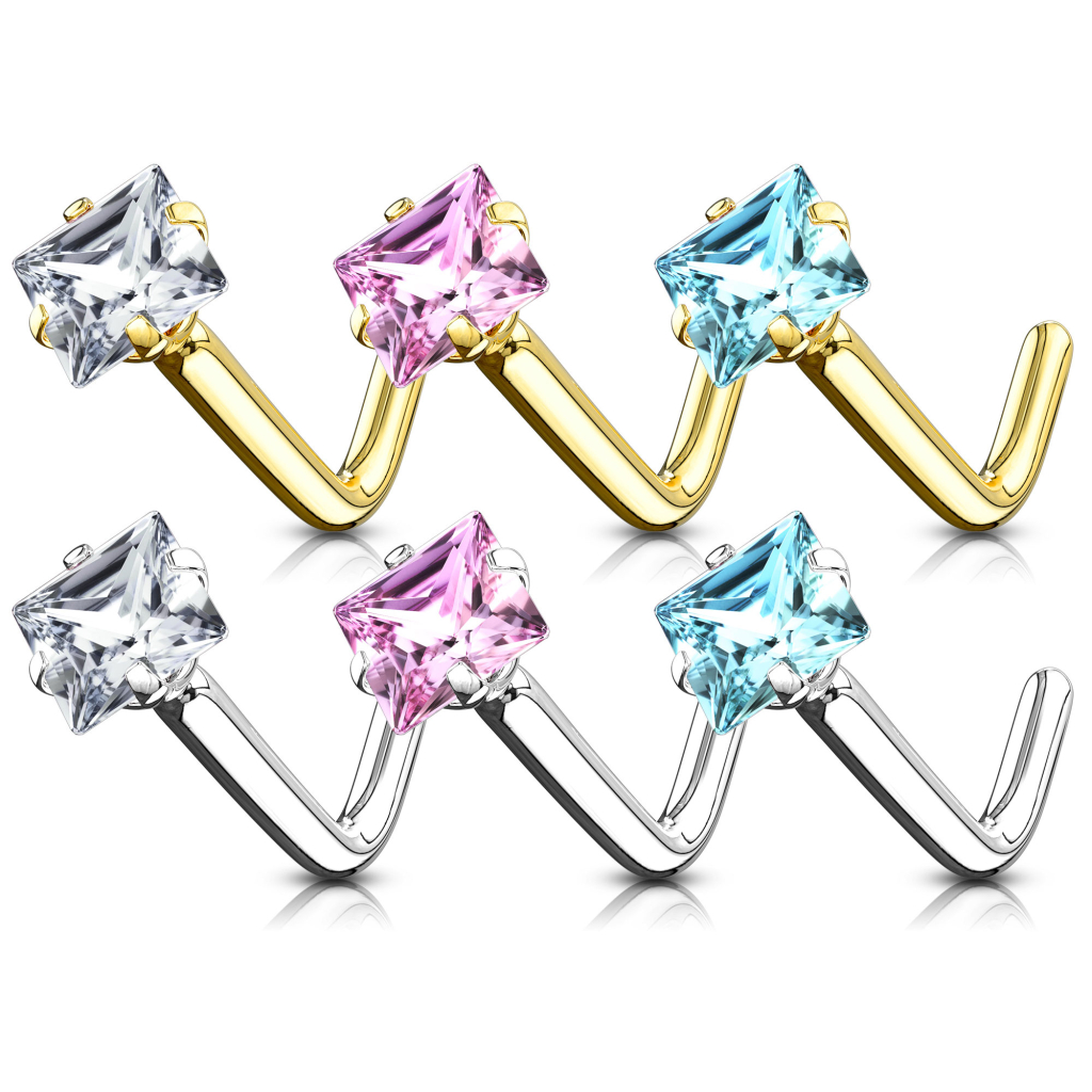Kolczyk do nosa z 14-karatowego złota z kwadratowym kamieniem