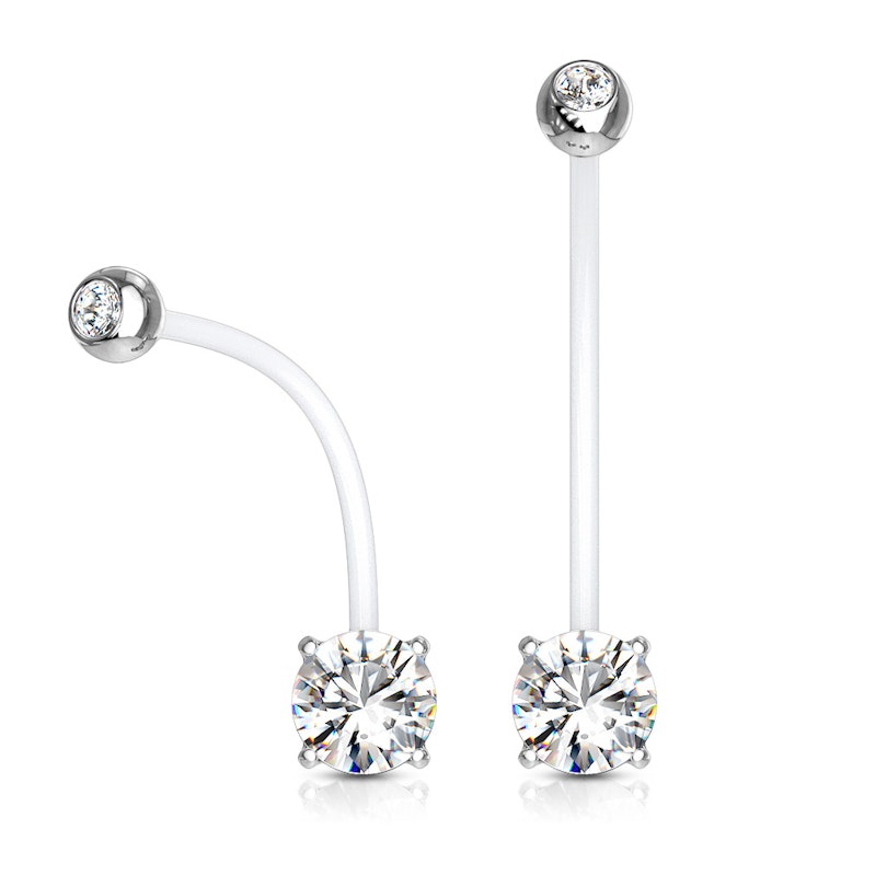 Model prezentowany na zdjęciu jest wykonany z miękkiego, plastikowego materiału PTFE, który jest elastyczny i łatwo się zgina. To oznacza, że noszony w pępku podąży za twoimi ruchami ciała i dostosuje się łatwo do nowych kształtów brzucha.