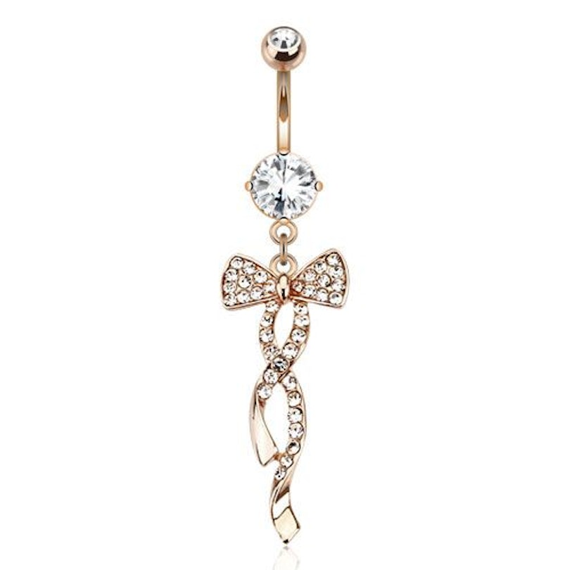 Kolczyk do pępka powlekany różowym złotem z kokardką i kamieniami