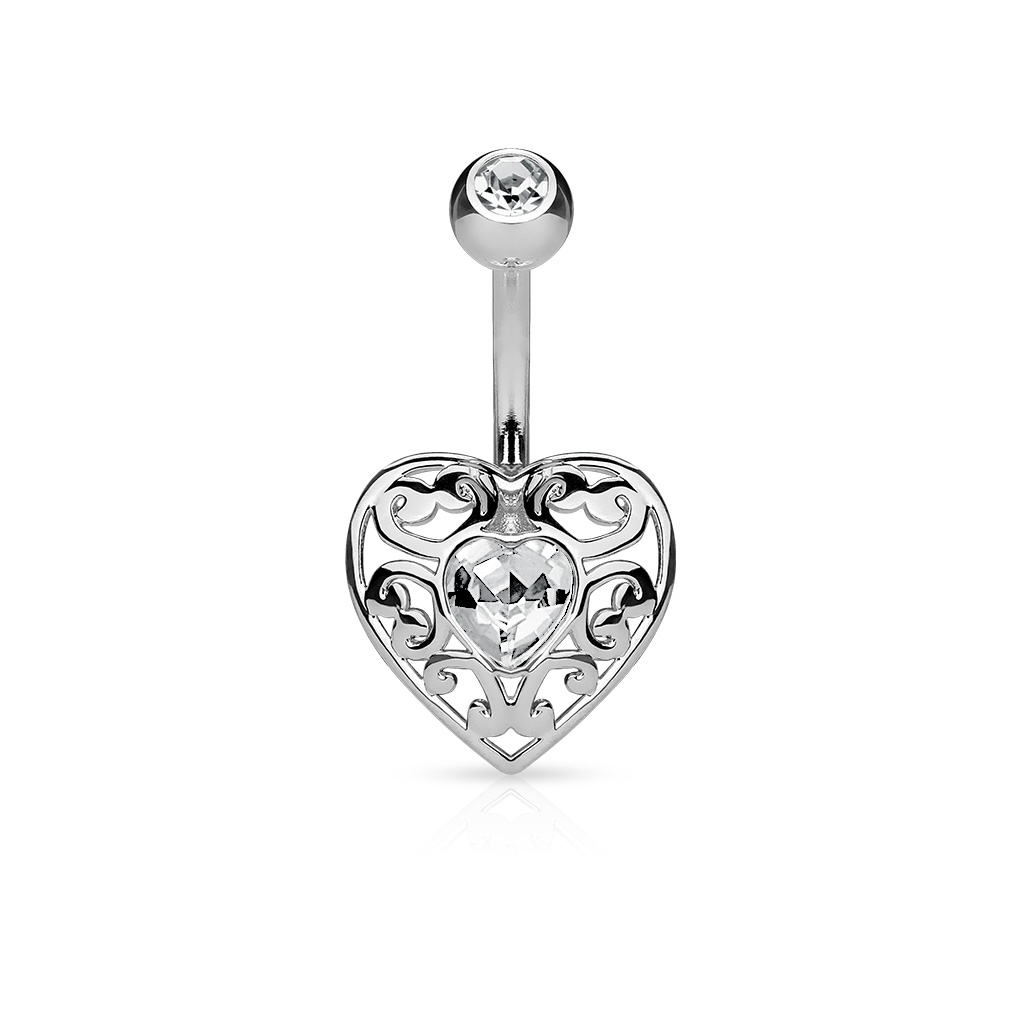 Kolczyk do pępka w kształcie serca z kryształkowym sercem w środku