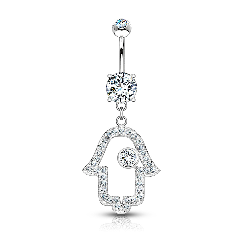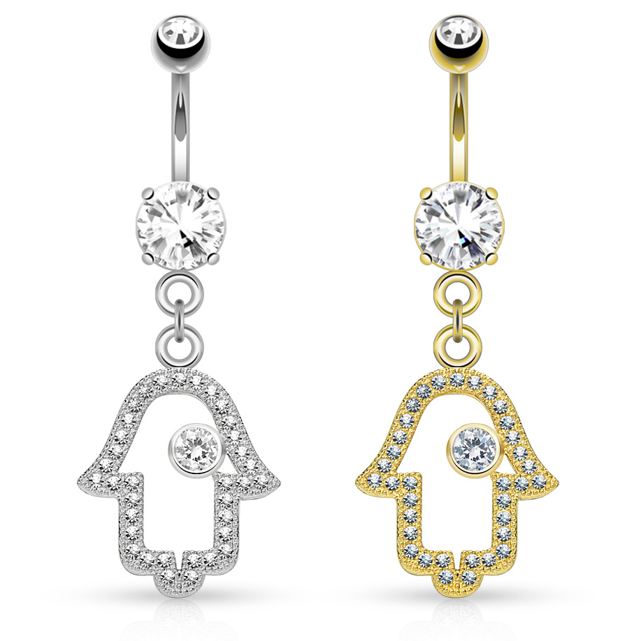 Nazwa: Kolczyk do pępka z 14-karatowego złota z dłonią wysadzaną kamieniami