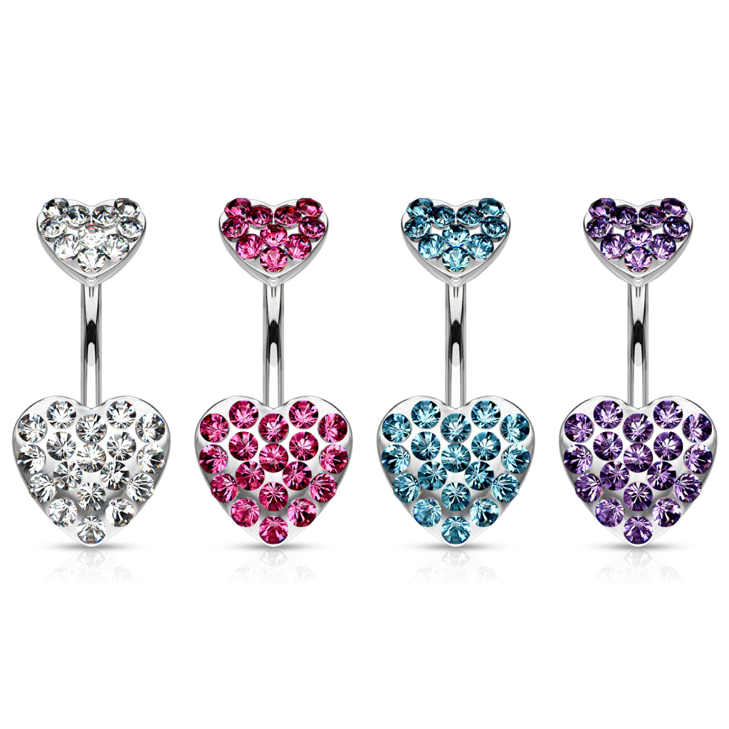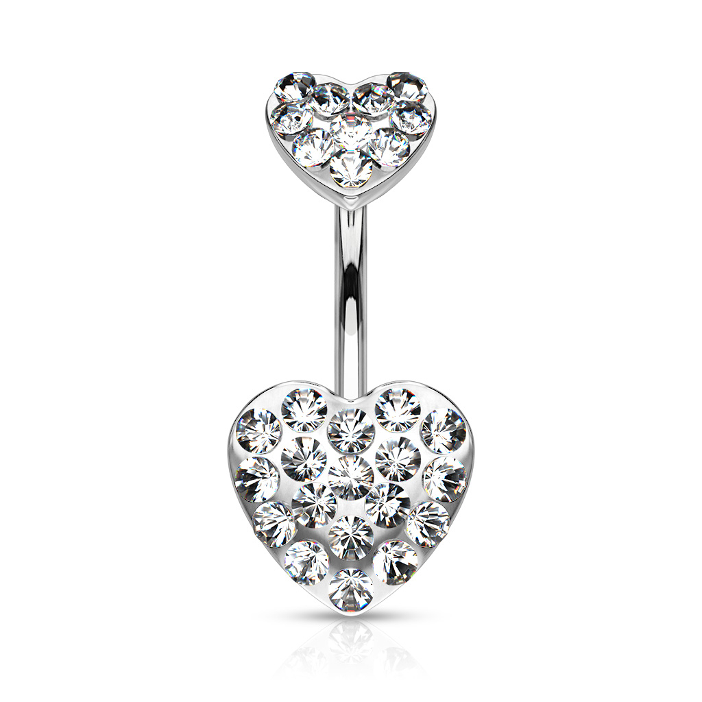 Kolczyk do pępka z dwoma sercami wysadzanymi kamieniami