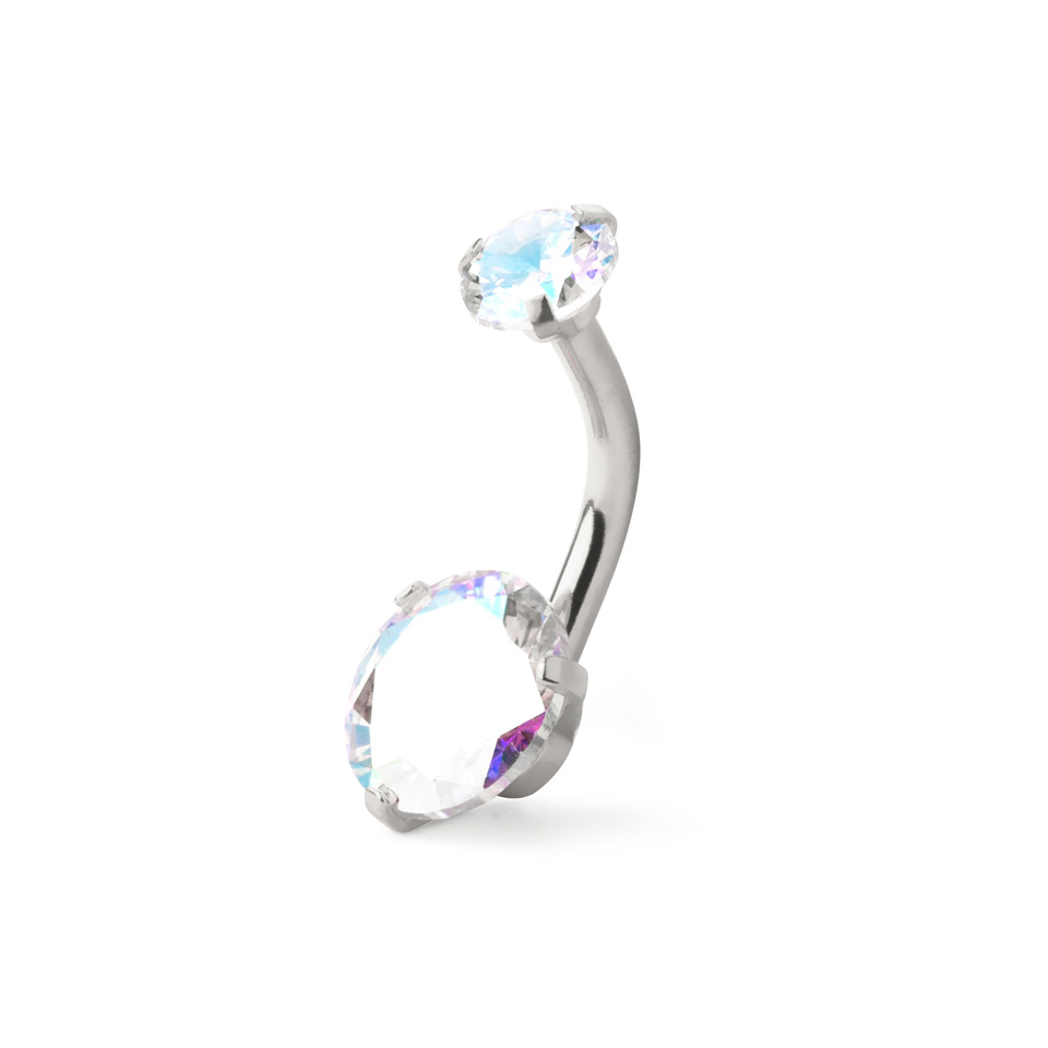 Ten kolczyk do pępka ma wiele zalet. Po pierwsze jest wyposażony w gwint wewnętrzny, który jest dużą zaletą podczas zakładania i zdejmowania biżuterii. Dzięki takiemu rozwiązaniu nie uszkodzisz, lub nie podrażnisz skóry. Inną zaletą jest kamień, który zdobi biżuterię, mimo że wybierasz podstawowy kolor, będzie on się mienił kolorami tęczy. Każdy z nich jest bezpiecznie utrzymywany na miejscu za pomocą małych haczyków, co sprawia że cyrkonia jest wyeksponowana i dzięki temu lepiej odbija światło.