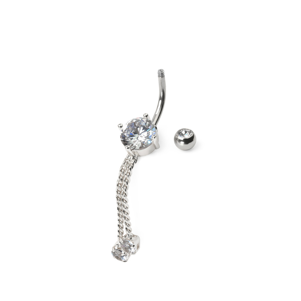 Kolczyk do pępka z kamieniami i łańcuszkami