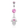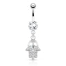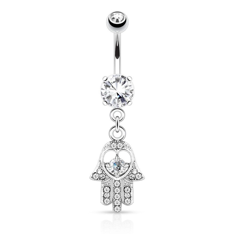 Kolczyk do pępka z kamieniem i zawieszką w kształcie dłoni