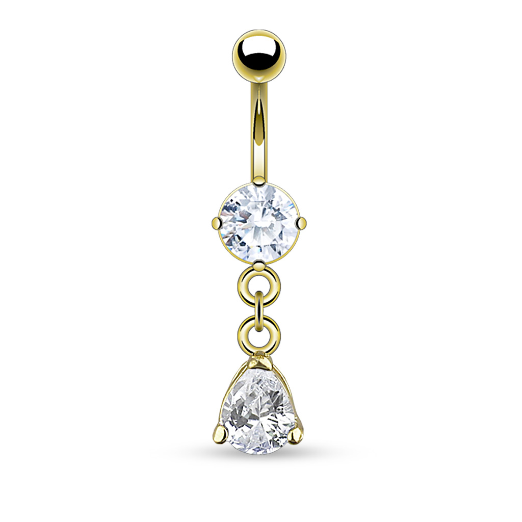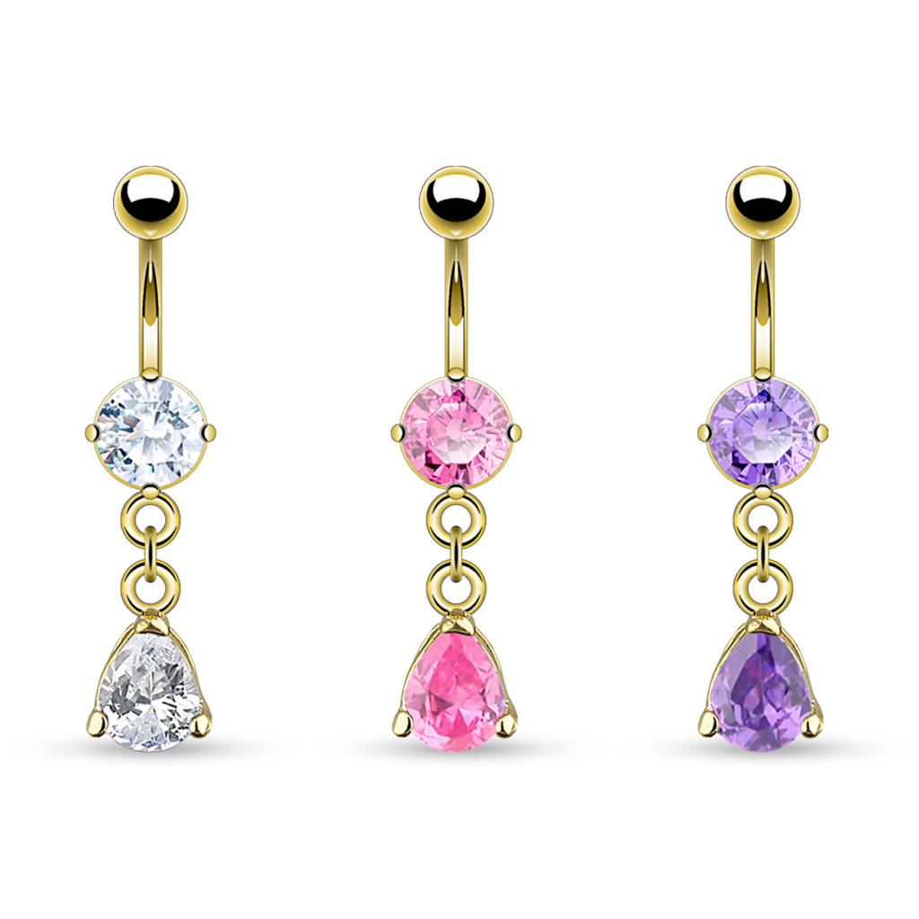 Kolczyk do pępka z kamieniem i zawieszką w kształcie łezki