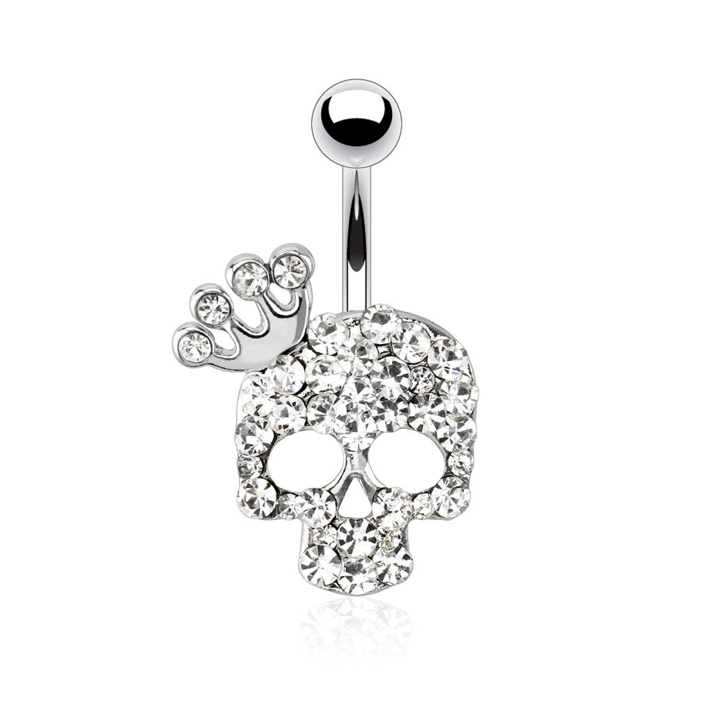 Kolczyk do pępka z koroną i czaszką wysadzanymi kamieniami