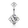 Kolczyk do pępka z kwadratowym kamieniem i wewnętrznym gwintem