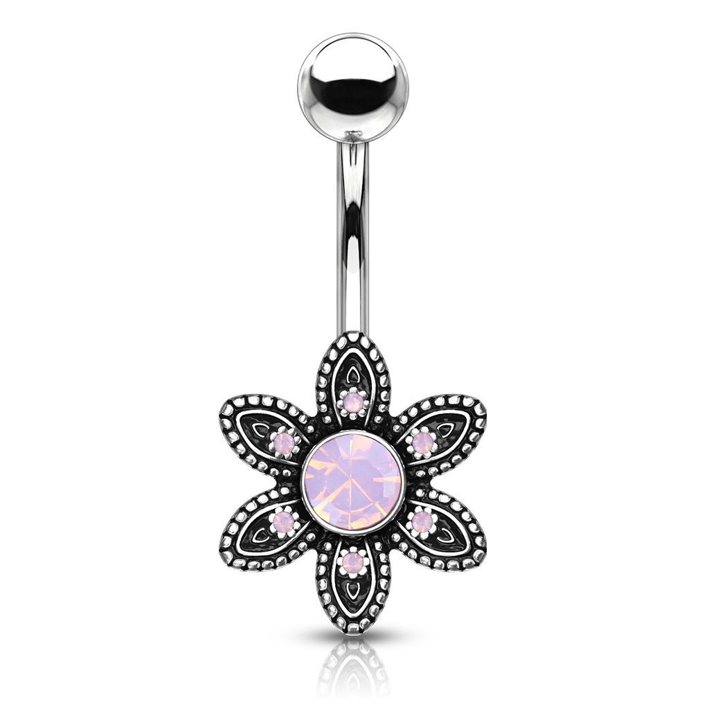 Nazwa: Kolczyk do pępka z kwiatem i okrągłym opalem