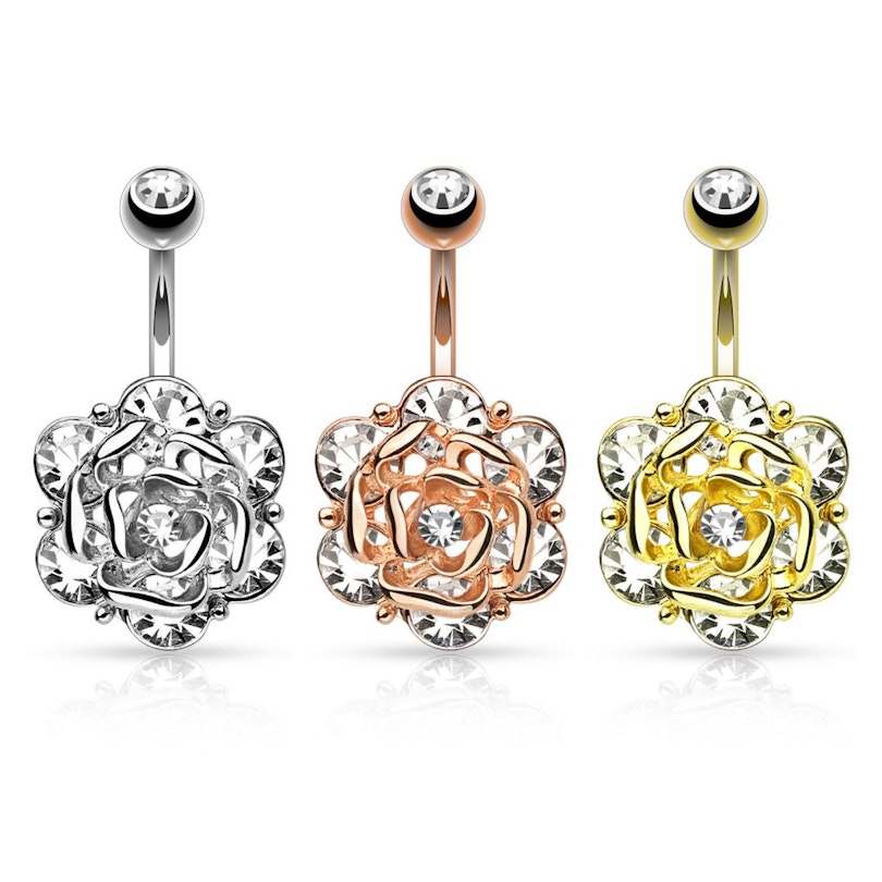Nazwa: Kolczyk do pępka z kwiatem wysadzanym cyrkoniami