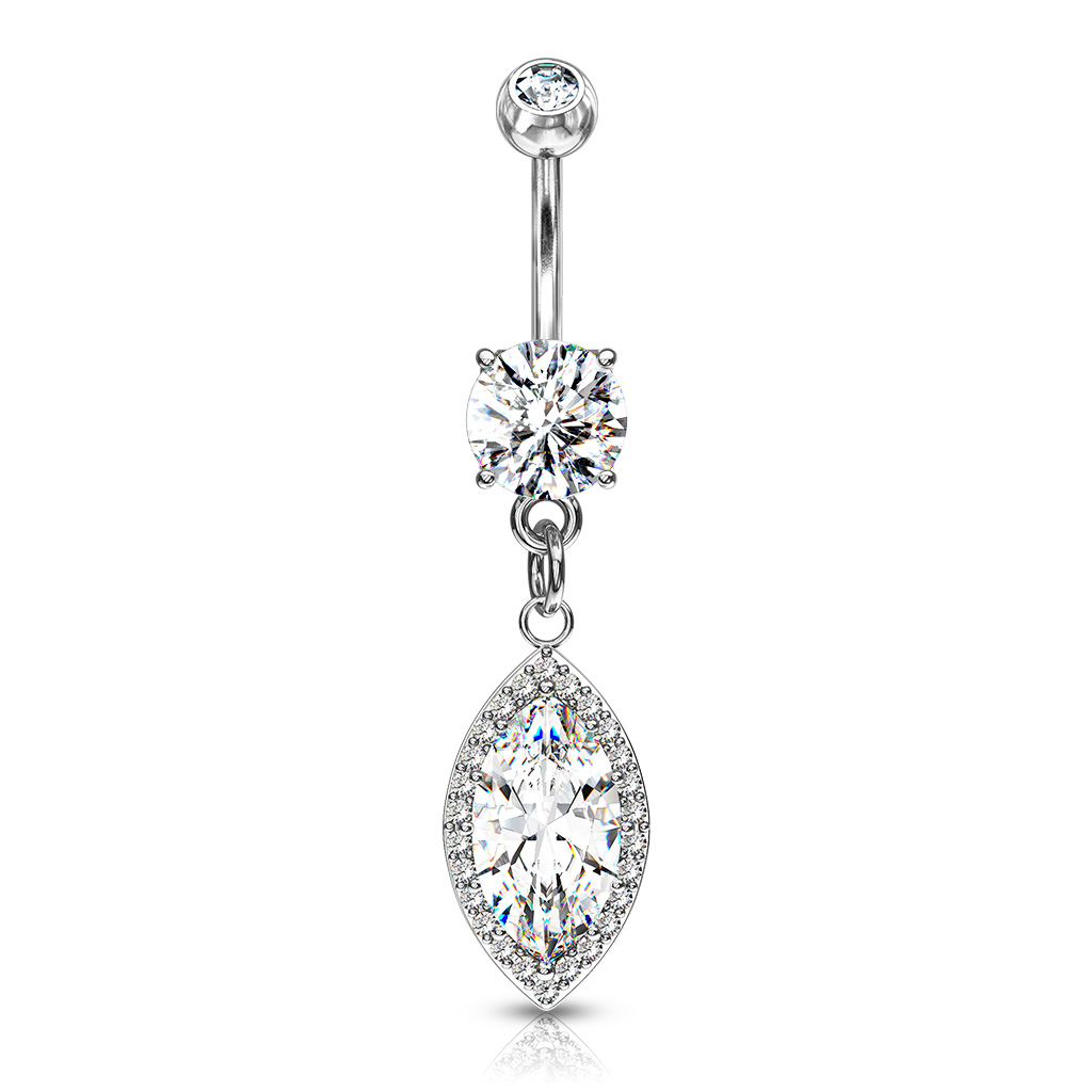 Kolczyk do pępka z owalnym kamieniem w zawieszce