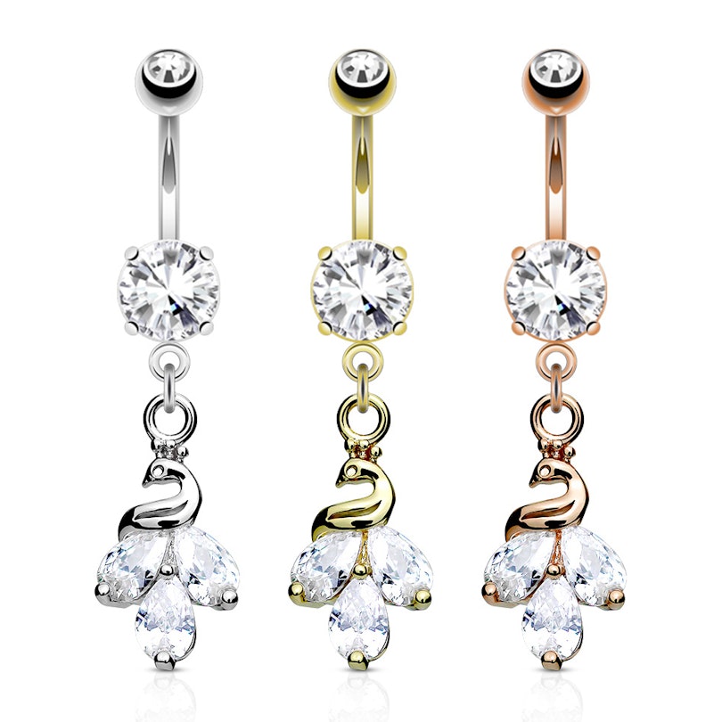 Nazwa: Kolczyk do pępka z pawiem na wisiorku