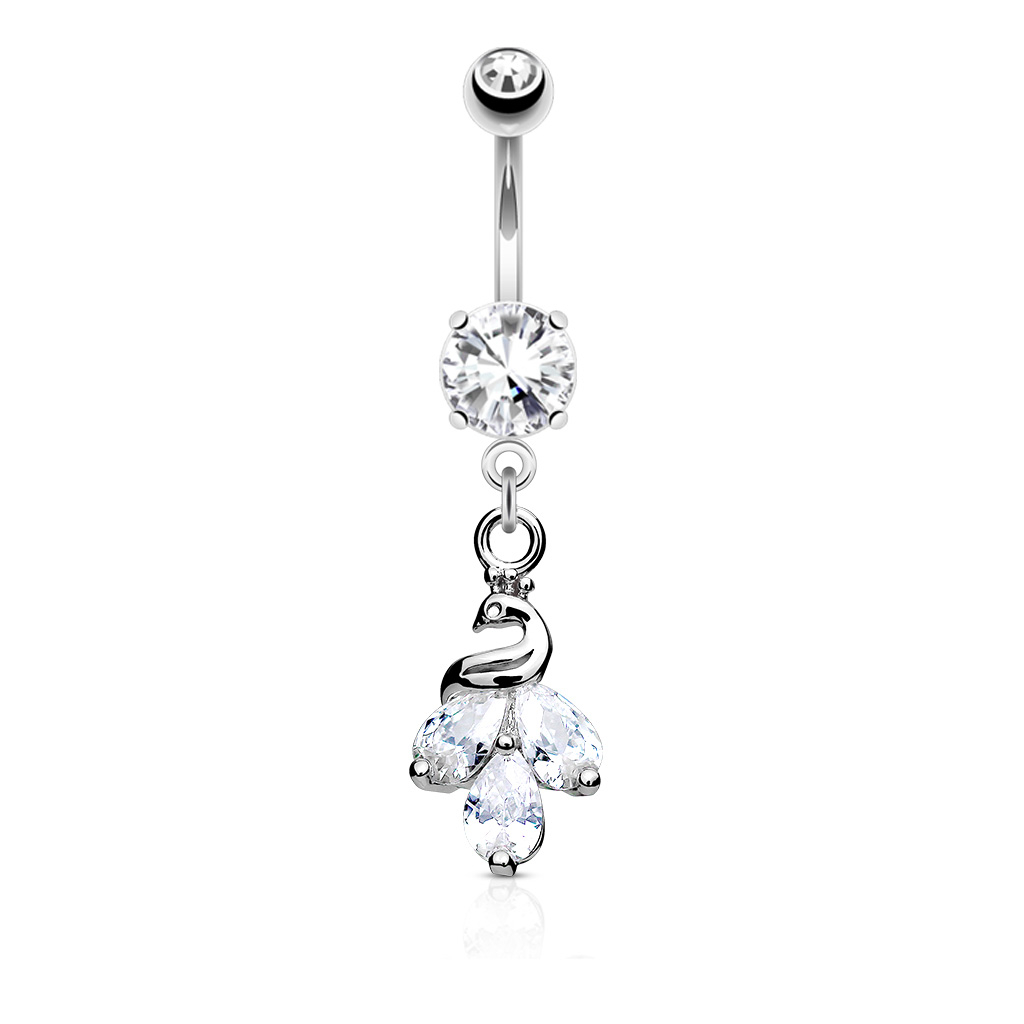 Nazwa: Kolczyk do pępka z pawiem na wisiorku