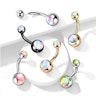 Nazwa: Kolczyk do pępka z podwójnym tęczowym kamieniem