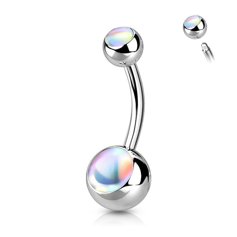 Kolczyk do pępka z podwójnym tęczowym kamieniem