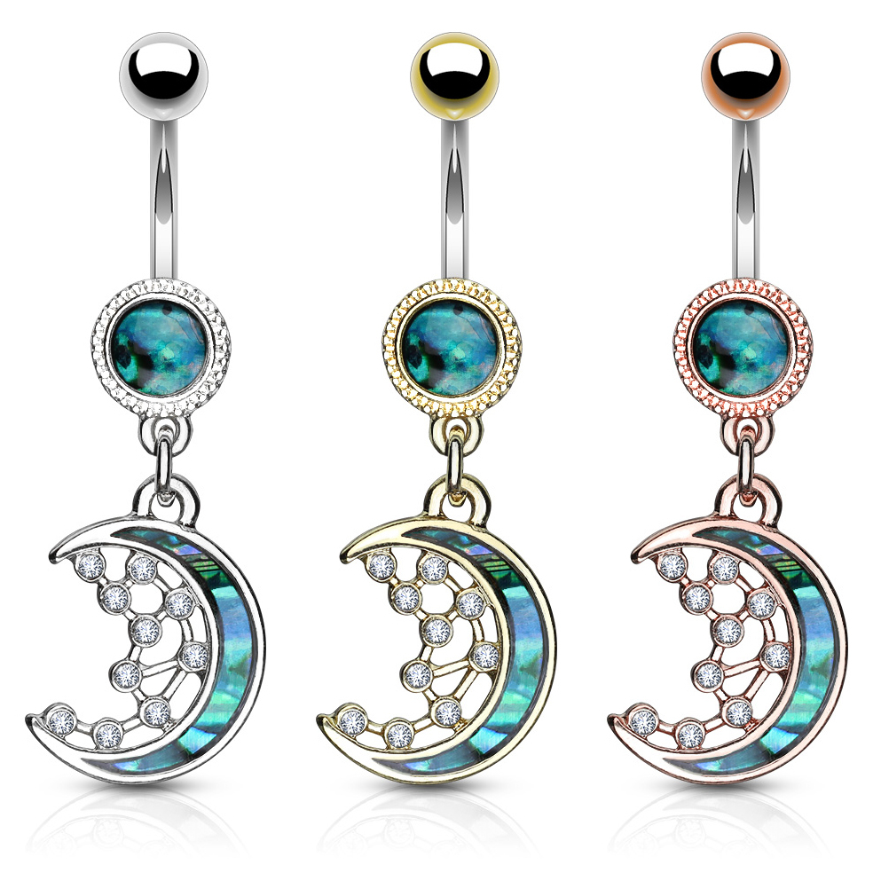 Kolczyk do pępka z półksiężycem i gwiazdami