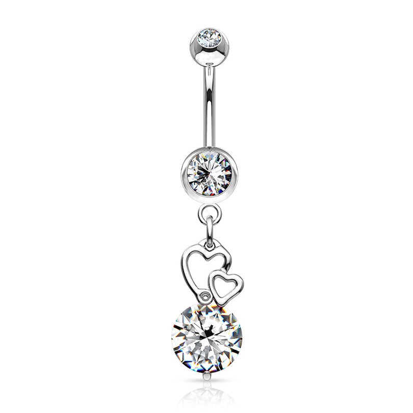 Nazwa: Kolczyk do pępka z sercem i dużym kryształem
