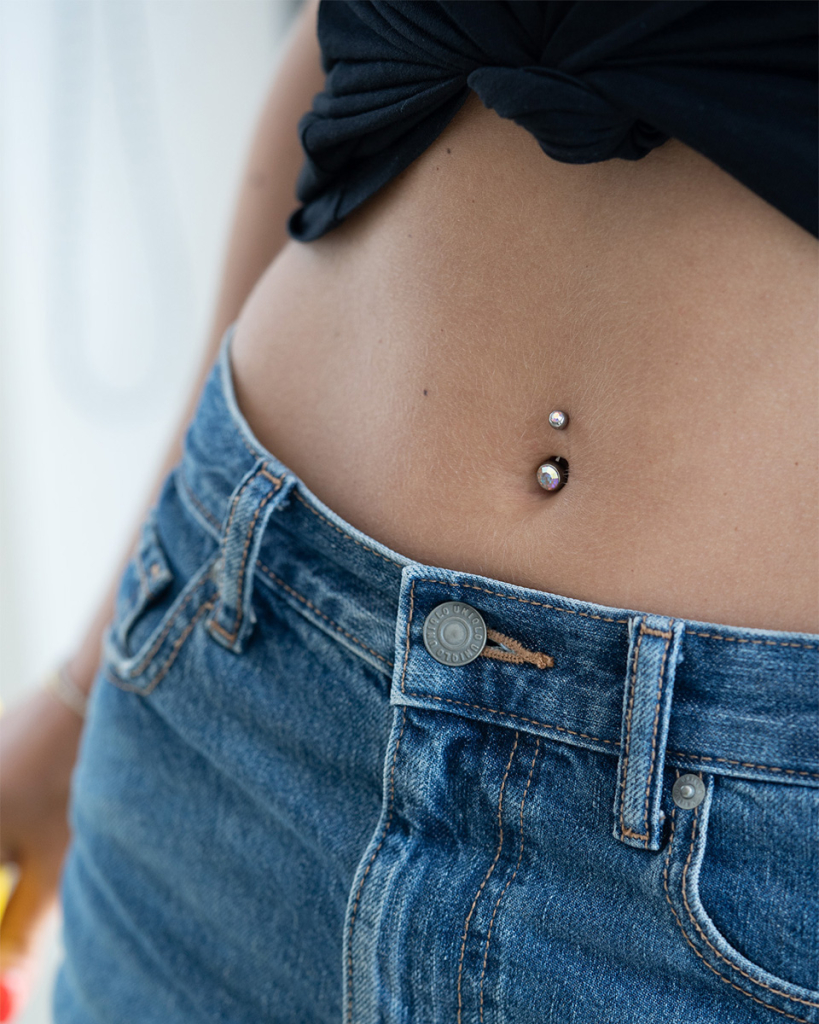 Nazwa: Kolczyk do pępka z tytanu z dwoma kamieniami