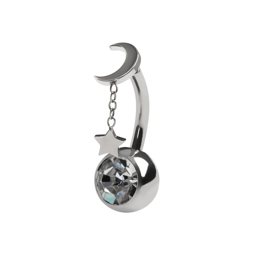Kolczyk do pępka z tytanu z ruchomym księżycem i gwiazdką
