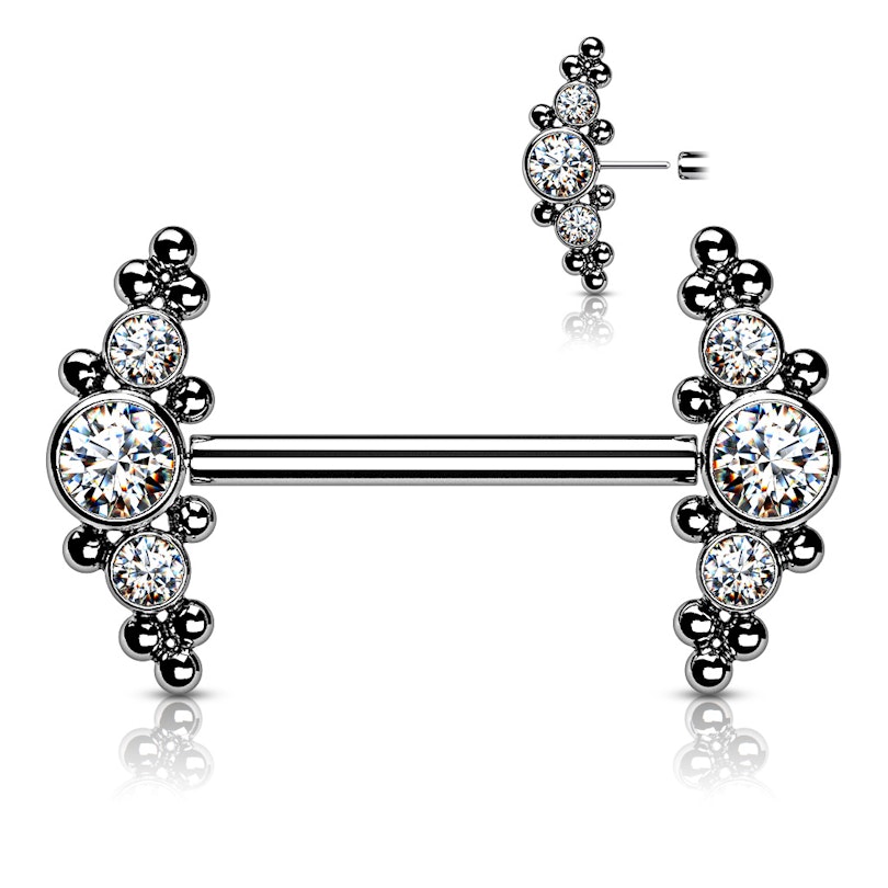 Kolczyk do piercingu sutka z tytanu bez gwintu zdobiony kamieniami